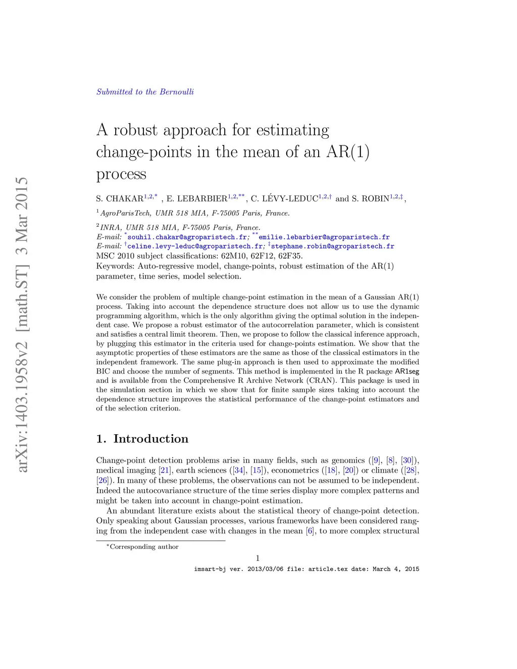 A robust approach for estimating change-points in the mean of an AR(1)