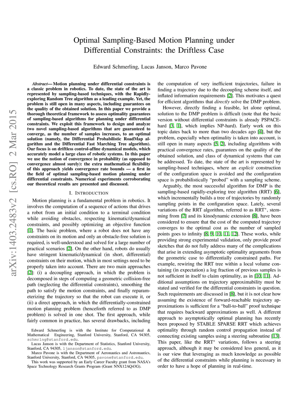 Optimal Sampling-Based Motion Planning under Differential Constraints: