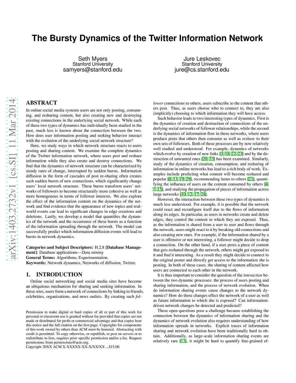 In online social media systems users are not only posting, consuming, and resharing content, but also creating new and destroying existing connections in the underlying social network. While each of these two types of dynamics has individually been studied in the past, much less is known about the connection between the two. How does user information posting and seeking behavior interact with the evolution of the underlying social network structure? Here, we study ways in which network structure reacts to users posting and sharing content. We examine the complete dynamics of the Twitter information network, where users post and reshare information while they also create and destroy connections. We find that the dynamics of network structure can be characterized by steady rates of change, interrupted by sudden bursts. Information diffusion in the form of cascades of post re-sharing often creates such sudden bursts of new connections, which significantly change users' local network structure. These bursts transform users' networks of followers to become structurally more cohesive as well as more homogenous in terms of follower interests. We also explore the effect of the information content on the dynamics of the network and find evidence that the appearance of new topics and real-world events can lead to significant changes in edge creations and deletions. Lastly, we develop a model that quantifies the dynamics of the network and the occurrence of these bursts as a function of the information spreading through the network. The model can successfully predict which information diffusion events will lead to bursts in network dynamics.