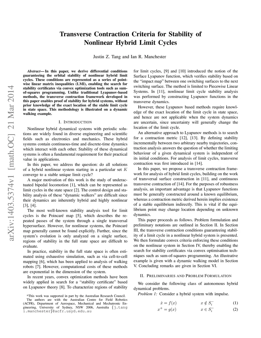 Transverse Contraction Criteria for Stability of Nonlinear Hybrid Limit