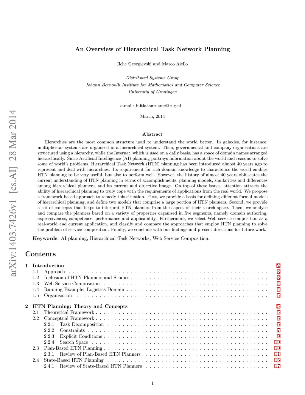 Hierarchies are the most common structure used to understand the world better. In galaxies, for instance, multiple-star systems are organised in a hierarchical system. Then, governmental and company organisations are structured using a hierarchy, while the Internet, which is used on a daily basis, has a space of domain names arranged hierarchically. Since Artificial Intelligence (AI) planning portrays information about the world and reasons to solve some of world's problems, Hierarchical Task Network (HTN) planning has been introduced almost 40 years ago to represent and deal with hierarchies. Its requirement for rich domain knowledge to characterise the world enables HTN planning to be very useful, but also to perform well. However, the history of almost 40 years obfuscates the current understanding of HTN planning in terms of accomplishments, planning models, similarities and differences among hierarchical planners, and its current and objective image. On top of these issues, attention attracts the ability of hierarchical planning to truly cope with the requirements of applications from the real world. We propose a framework-based approach to remedy this situation. First, we provide a basis for defining different formal models of hierarchical planning, and define two models that comprise a large portion of HTN planners. Second, we provide a set of concepts that helps to interpret HTN planners from the aspect of their search space. Then, we analyse and compare the planners based on a variety of properties organised in five segments, namely domain authoring, expressiveness, competence, performance and applicability. Furthermore, we select Web service composition as a real-world and current application, and classify and compare the approaches that employ HTN planning to solve the problem of service composition. Finally, we conclude with our findings and present directions for future work.