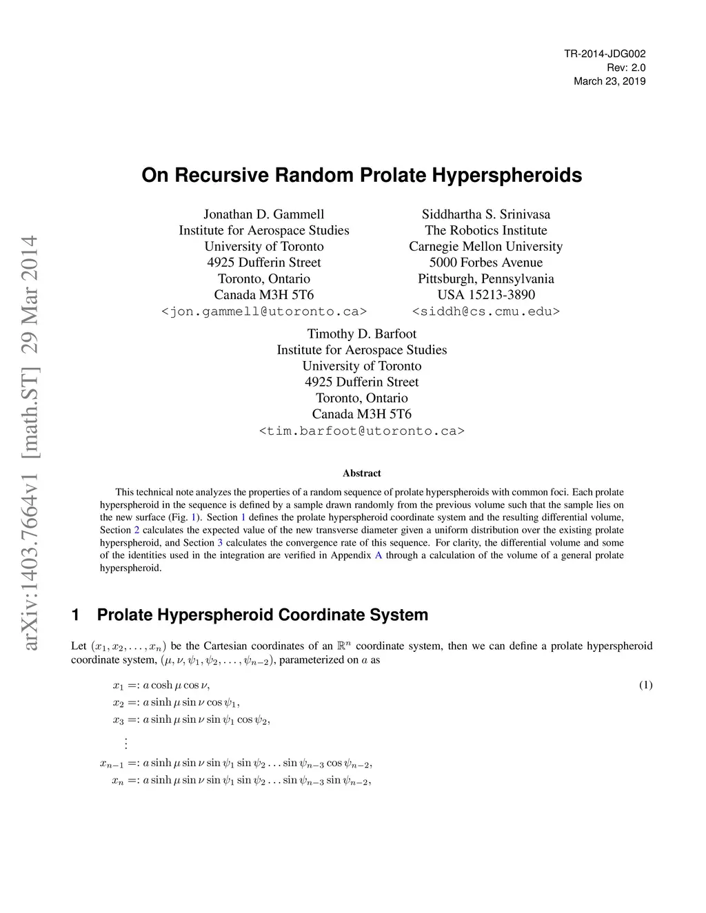 This technical note analyzes the properties of a random sequence of prolate hyperspheroids with common foci. Each prolate hyperspheroid in the sequence is defined by a sample drawn randomly from the previous volume such that the sample lies on the new surface (Fig. 1). Section 1 defines the prolate hyperspheroid coordinate system and the resulting differential volume, Section 2 calculates the expected value of the new transverse diameter given a uniform distribution over the existing prolate hyperspheroid, and Section 3 calculates the convergence rate of this sequence. For clarity, the differential volume and some of the identities used in the integration are verified in Appendix A through a calculation of the volume of a general prolate hyperspheroid.