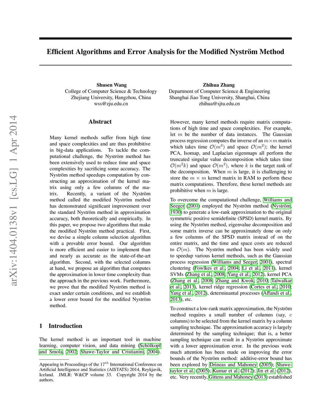 Efficient Algorithms and Error Analysis for the Modified Nystrom Method