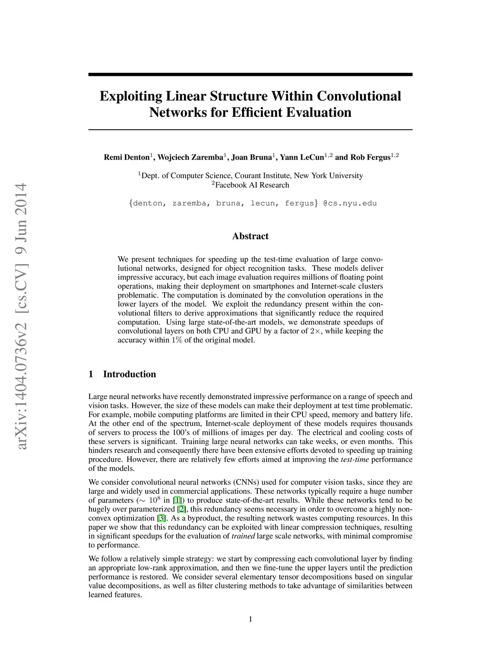 Exploiting Linear Structure Within Convolutional Networks for Efficient