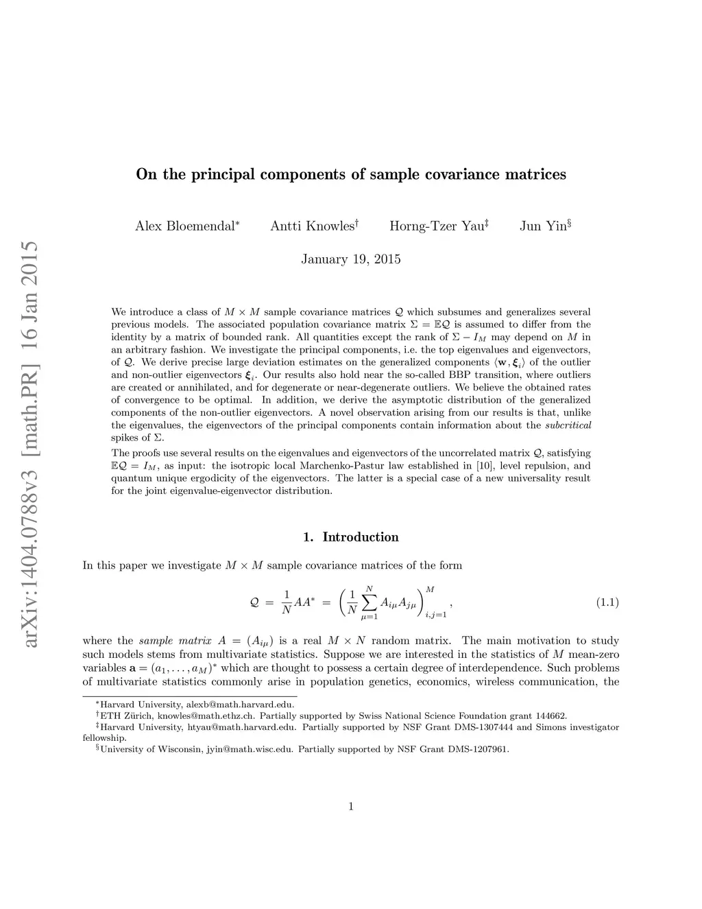 We introduce a class of sample covariance matrices which subsumes and generalizes several previous models. The associated population covariance matrix is assumed to differ from the identity by a matrix of bounded rank. All quantities except the rank of may depend on in an arbitrary fashion. We investigate the principal components, i.e.\ the top eigenvalues and eigenvectors, of . We derive precise large deviation estimates on the generalized components of the outlier and non-outlier eigenvectors . Our results also hold near the so-called BBP transition, where outliers are created or annihilated, and for degenerate or near-degenerate outliers. We believe the obtained rates of convergence to be optimal. In addition, we derive the asymptotic distribution of the generalized components of the non-outlier eigenvectors. A novel observation arising from our results is that, unlike the eigenvalues, the eigenvectors of the principal components contain information about the \emph{subcritical} spikes of . The proofs use several results on the eigenvalues and eigenvectors of the uncorrelated matrix , satisfying , as input: the isotropic local Marchenko-Pastur law established in [9], level repulsion, and quantum unique ergodicity of the eigenvectors. The latter is a special case of a new universality result for the joint eigenvalue-eigenvector distribution.