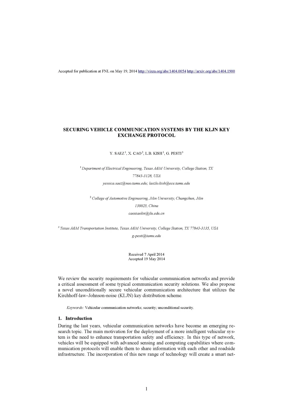 Securing vehicle communication systems by the KLJN key exchange protocol