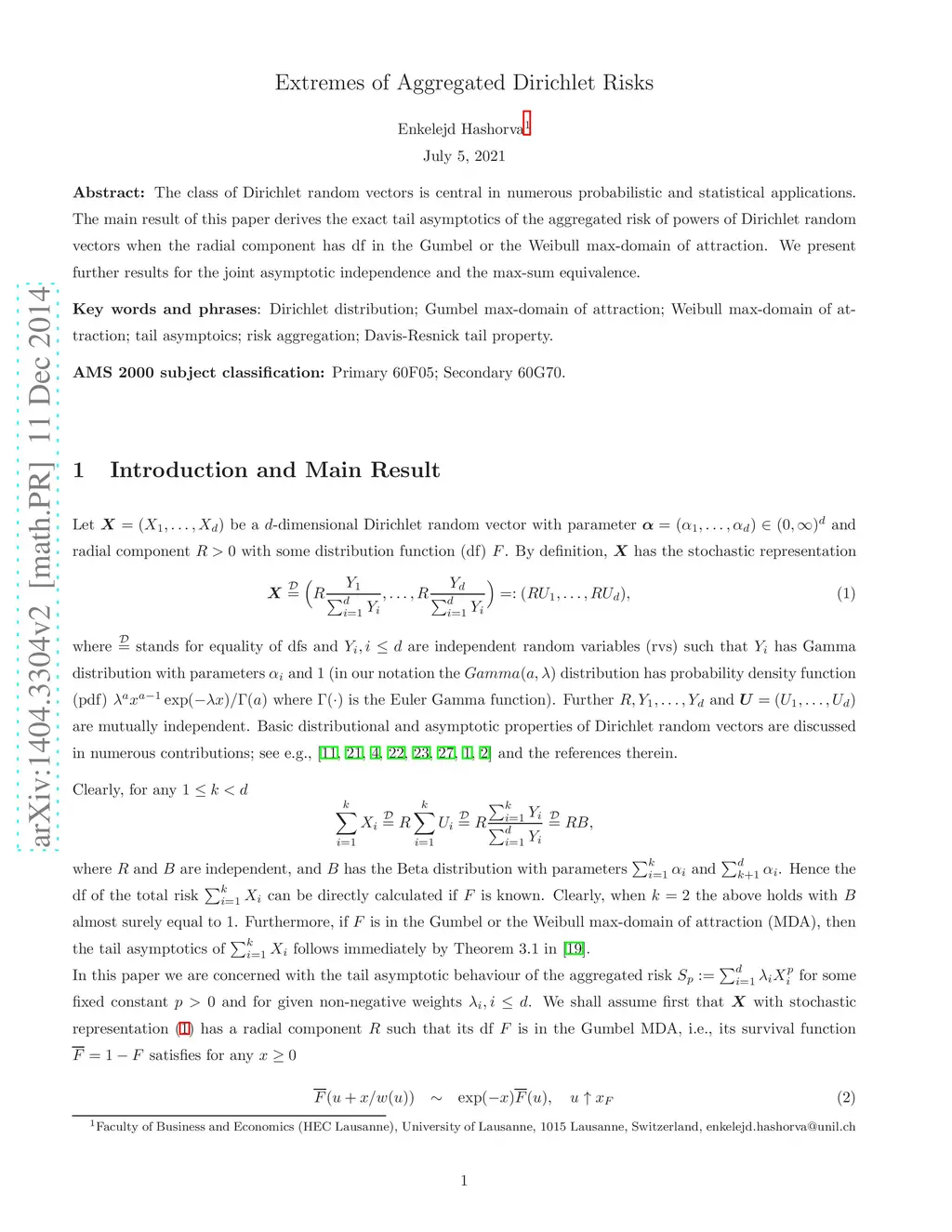 Journal of Multivariate Analysis (JMA), 2014