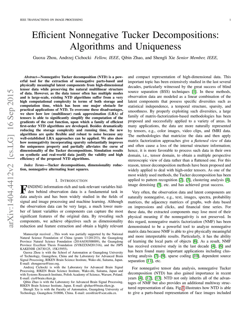 Efficient Nonnegative Tucker Decompositions: Algorithms and Uniqueness