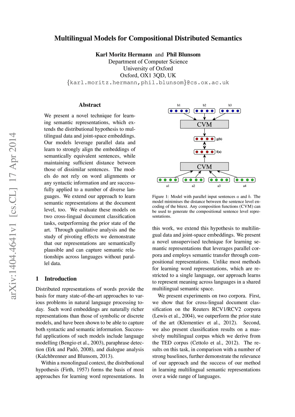 Multilingual Models for Compositional Distributed Semantics