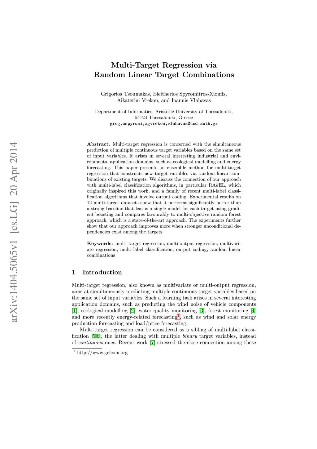 Multi-Target Regression via Random Linear Target Combinations