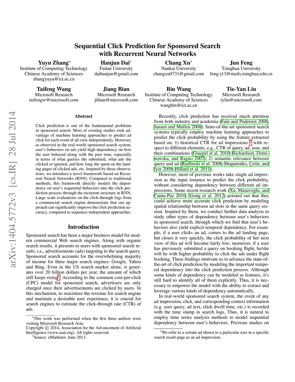 Sequential Click Prediction for Sponsored Search with Recurrent Neural