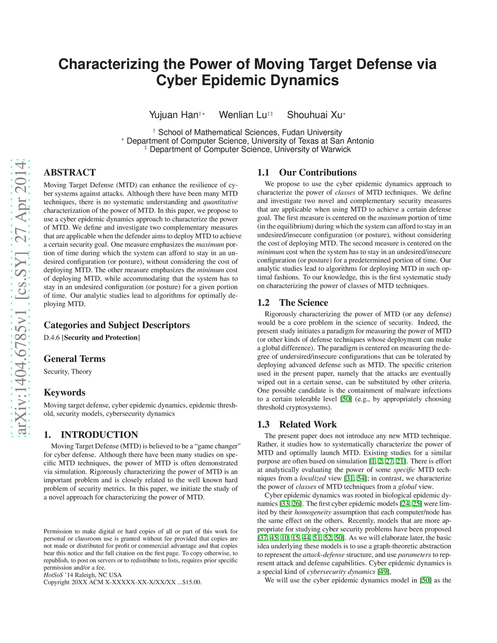 Characterizing the Power of Moving Target Defense via Cyber Epidemic