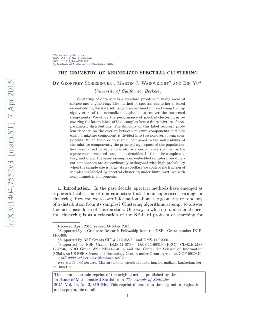 The geometry of kernelized spectral clustering