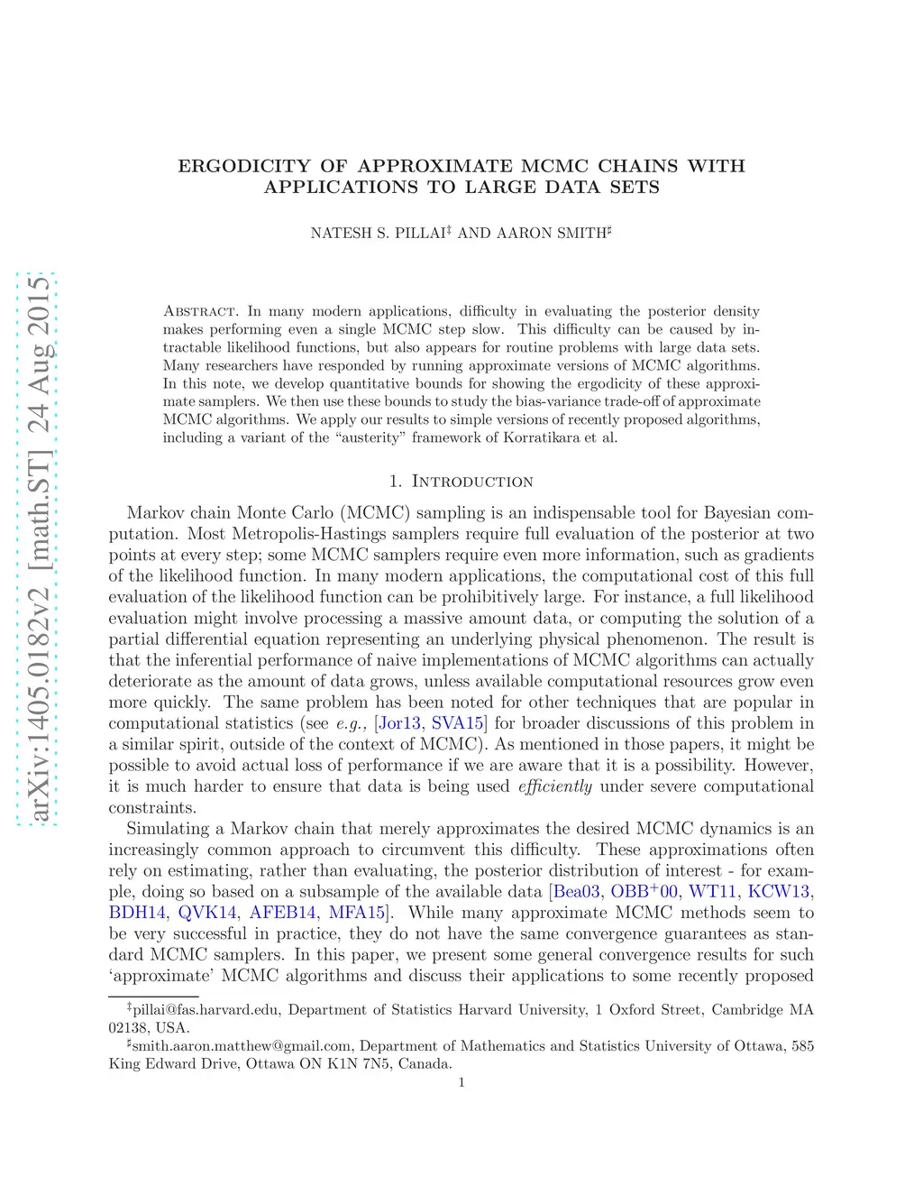Ergodicity of Approximate MCMC Chains with Applications to Large Data