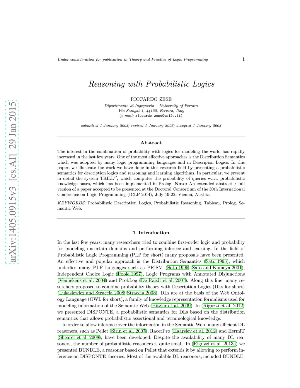 Reasoning with Probabilistic Logics