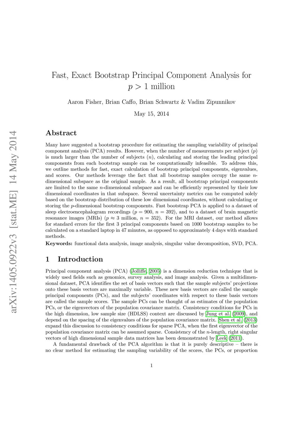Fast, Exact Bootstrap Principal Component Analysis for p>1 million