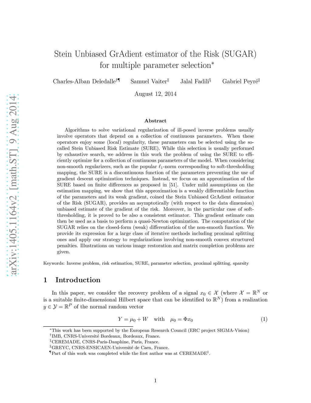 Stein Unbiased GrAdient estimator of the Risk (SUGAR) for multiple
