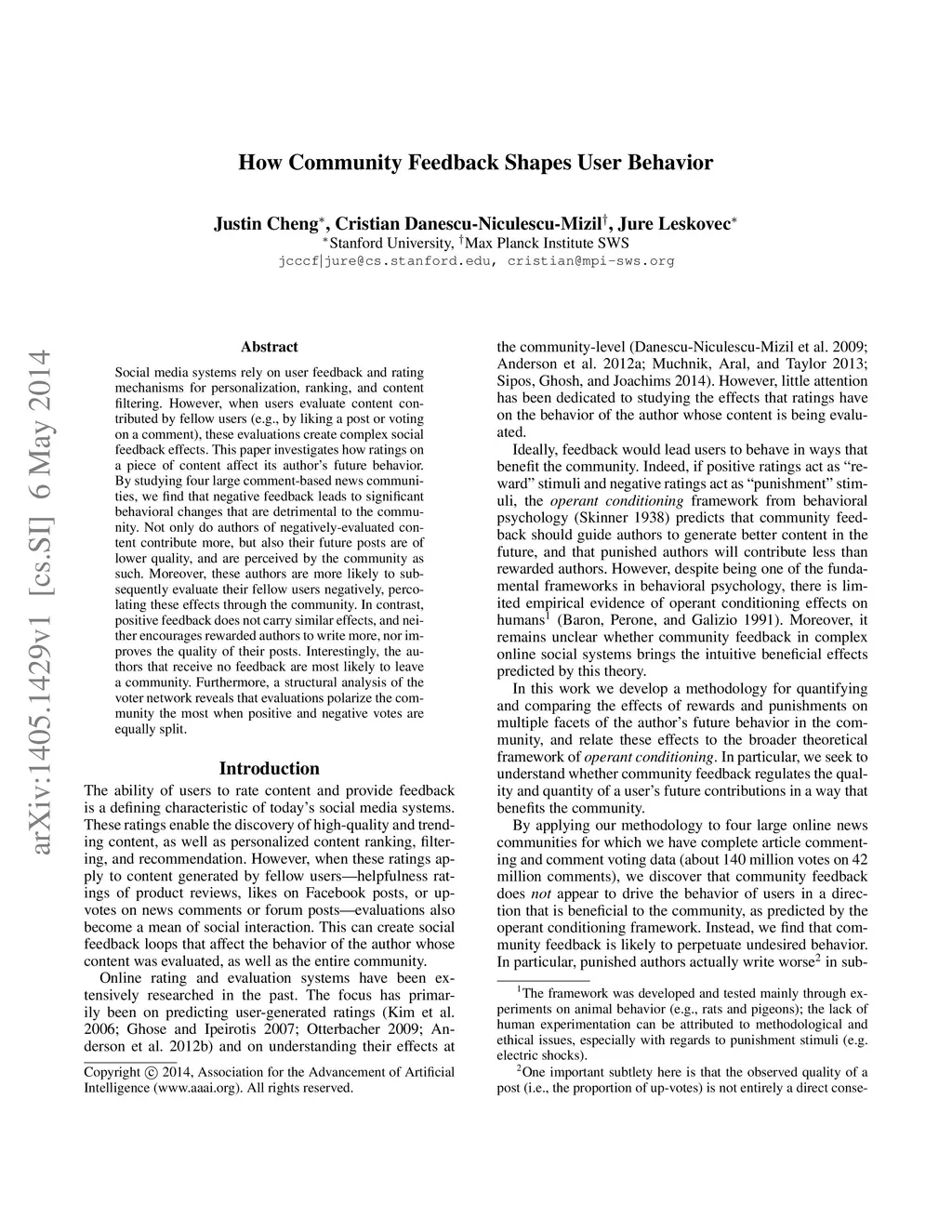 How Community Feedback Shapes User Behavior