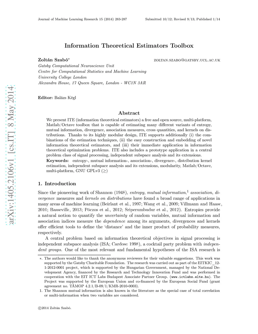 Information Theoretical Estimators Toolbox