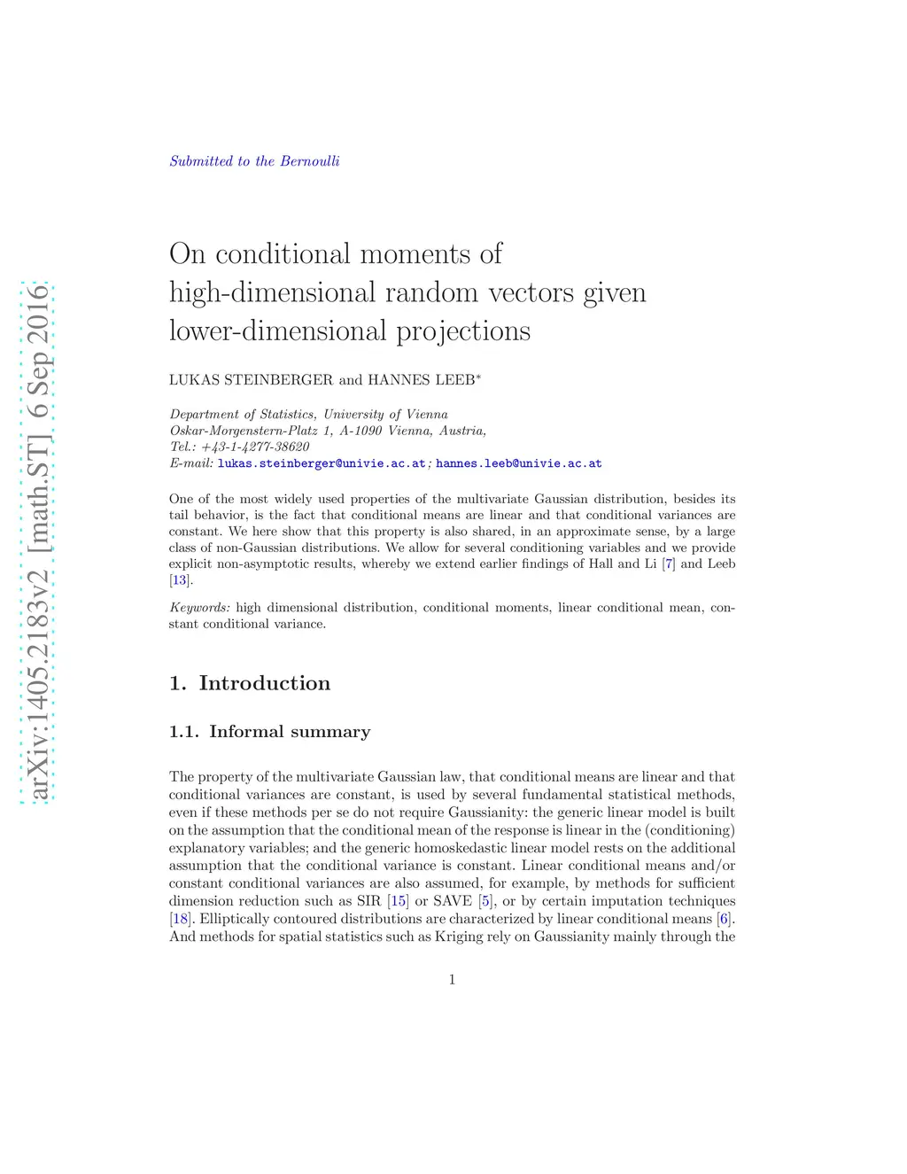 One of the most widely used properties of the multivariate Gaussian distribution, besides its tail behavior, is the fact that conditional means are linear and that conditional variances are constant. We here show that this property is also shared, in an approximate sense, by a large class of non-Gaussian distributions. We allow for several conditioning variables and we provide explicit non-asymptotic results, whereby we extend earlier findings of Hall and Li (1993) and Leeb (2013).