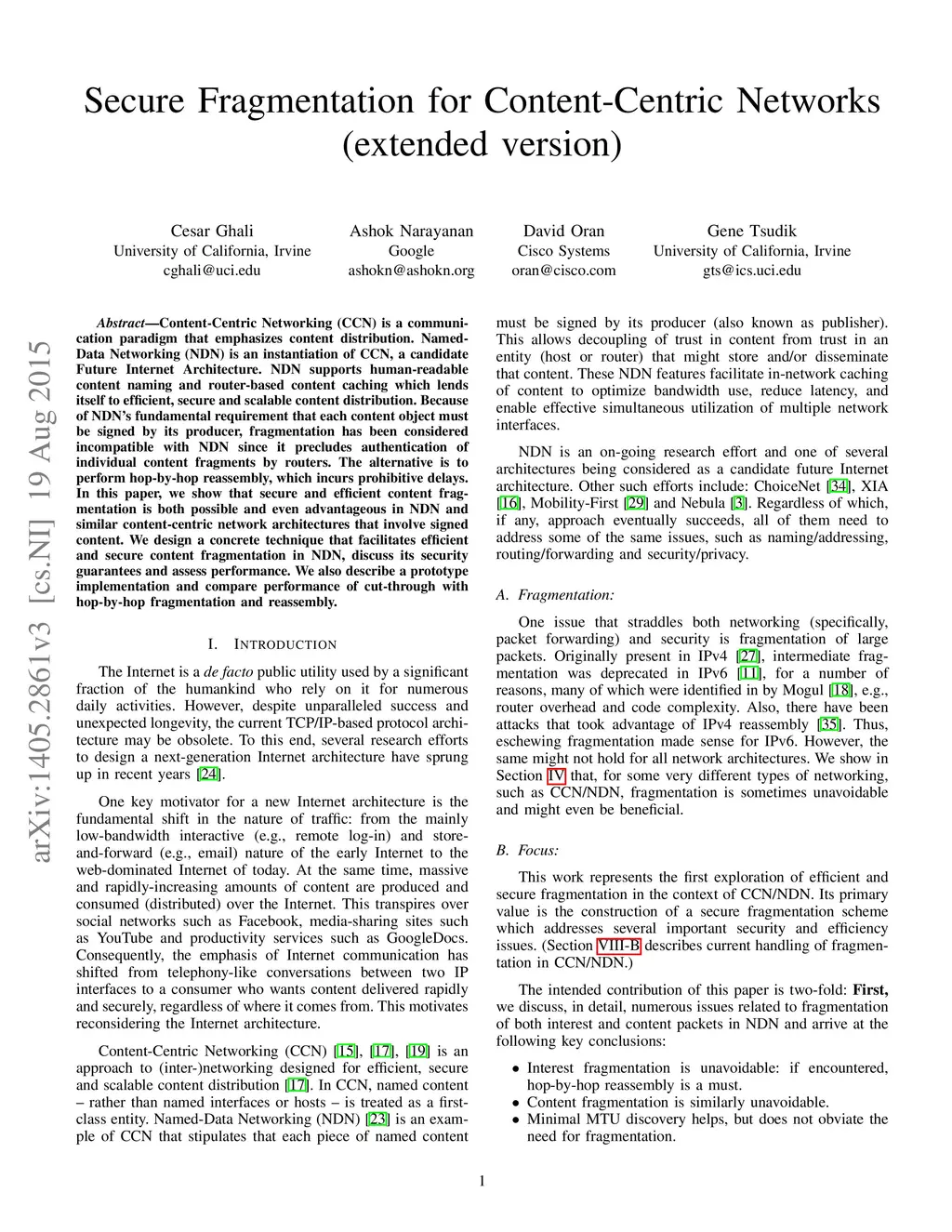 Secure Fragmentation for Content-Centric Networks (extended version)