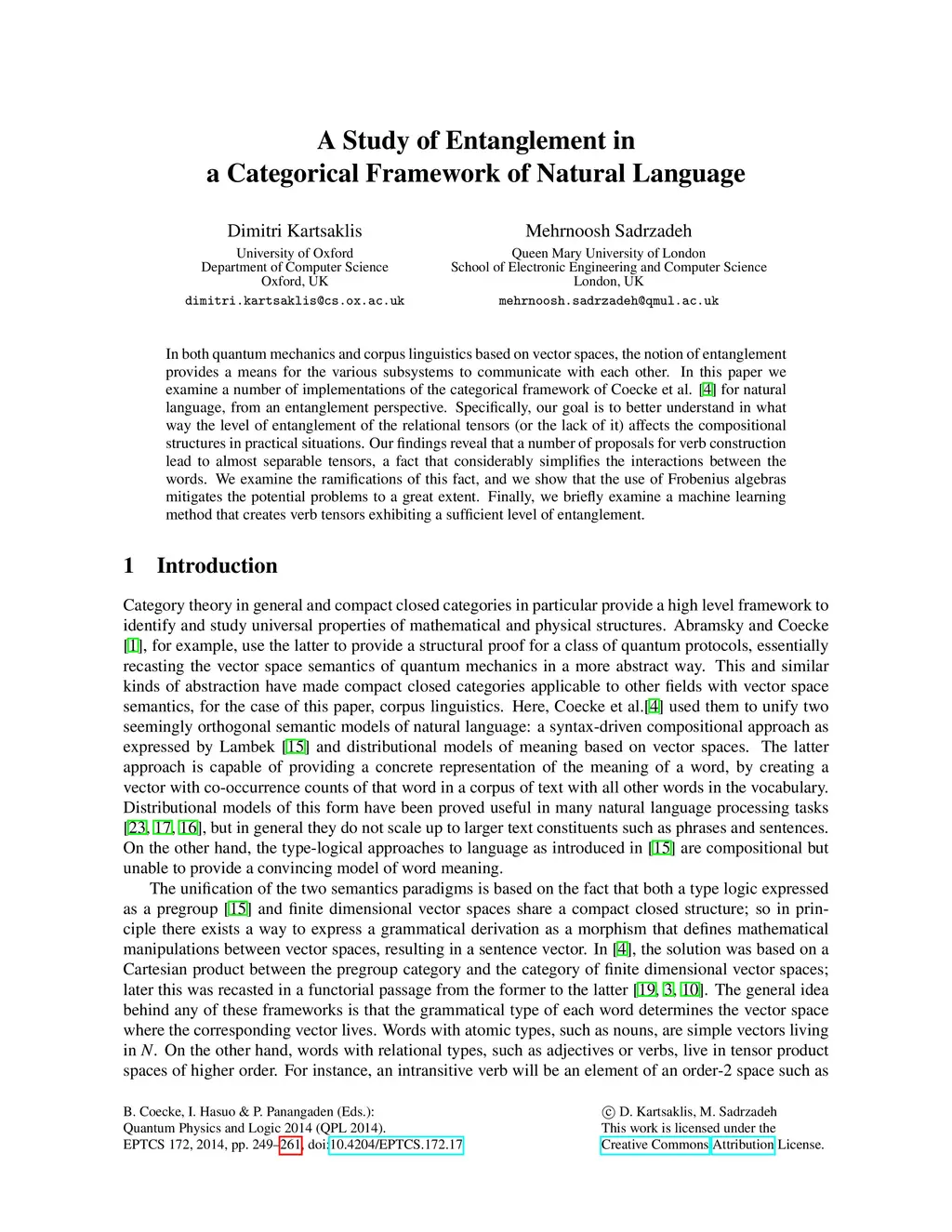 A Study of Entanglement in a Categorical Framework of Natural Language