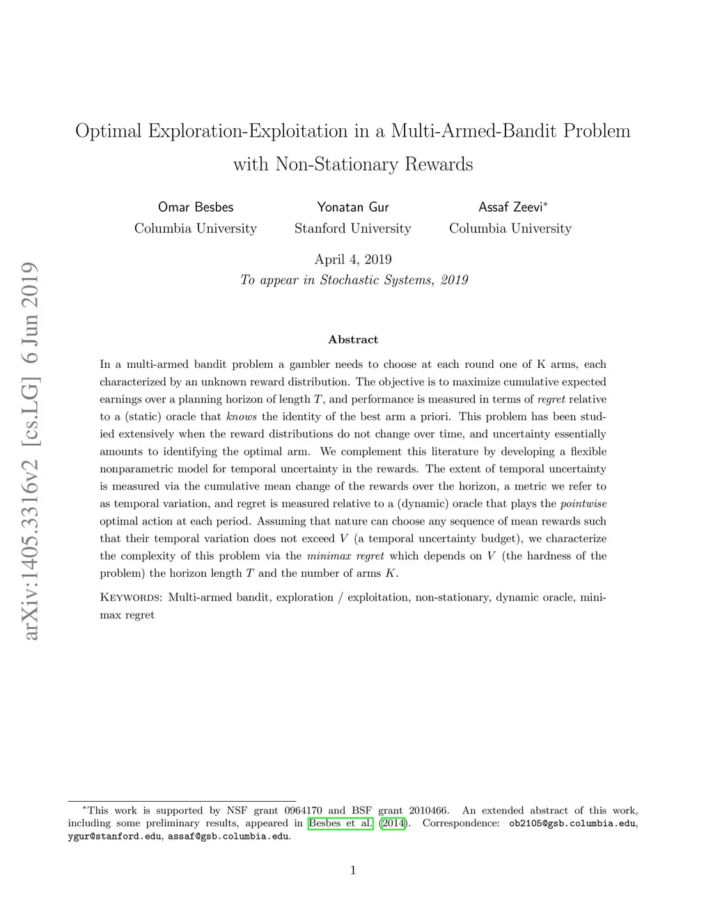 Non-stationary Rewards