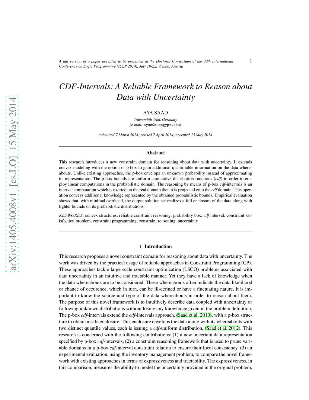 This research introduces a new constraint domain for reasoning about data with uncertainty. It extends convex modeling with the notion of p-box to gain additional quantifiable information on the data whereabouts. Unlike existing approaches, the p-box envelops an unknown probability instead of approximating its representation. The p-box bounds are uniform cumulative distribution functions (cdf) in order to employ linear computations in the probabilistic domain. The reasoning by means of p-box cdf-intervals is an interval computation which is exerted on the real domain then it is projected onto the cdf domain. This operation conveys additional knowledge represented by the obtained probabilistic bounds. Empirical evaluation shows that, with minimal overhead, the output solution set realizes a full enclosure of the data along with tighter bounds on its probabilistic distributions.