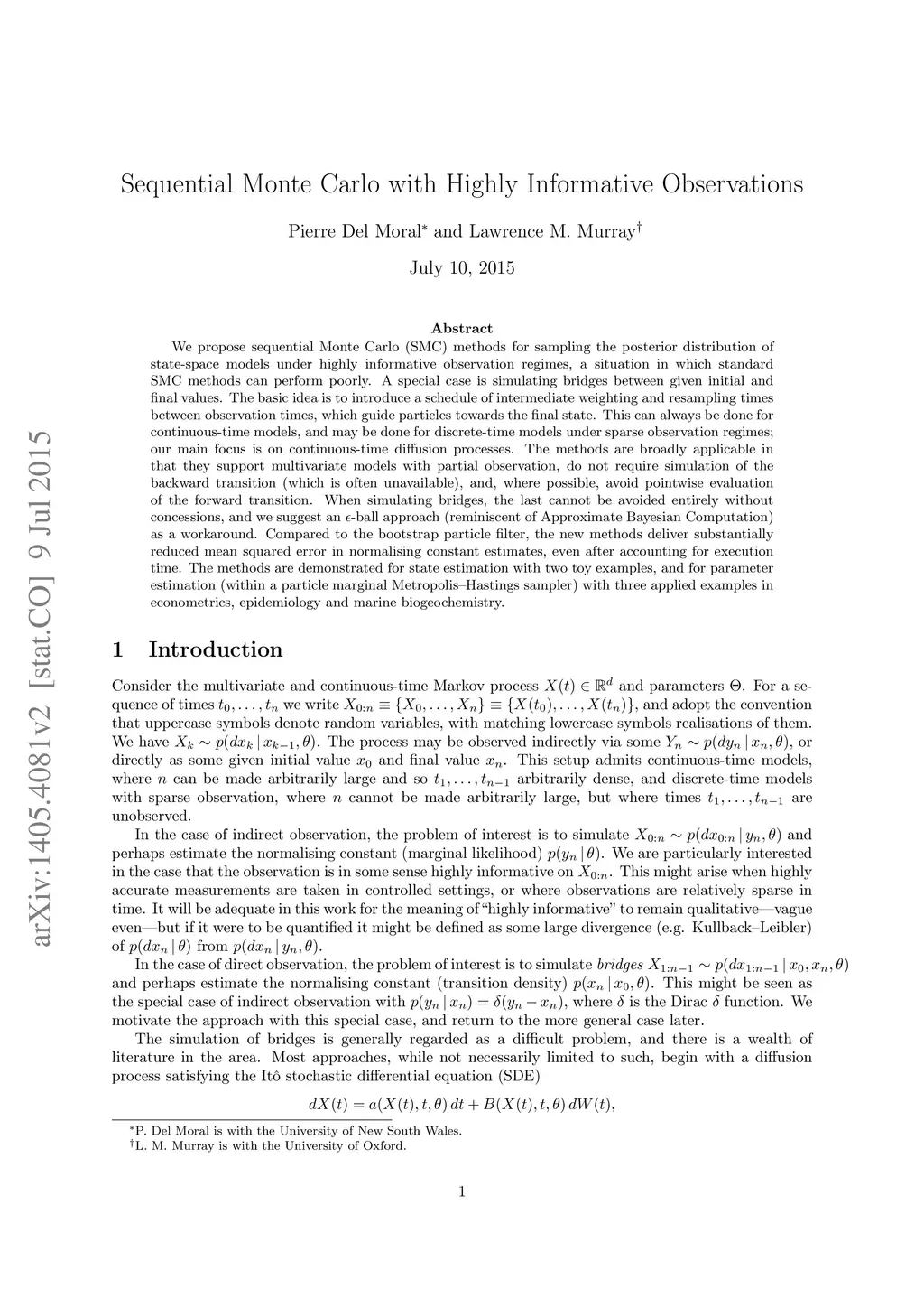 We propose sequential Monte Carlo (SMC) methods for sampling the posterior distribution of state-space models under highly informative observation regimes, a situation in which standard SMC methods can perform poorly. A special case is simulating bridges between given initial and final values. The basic idea is to introduce a schedule of intermediate weighting and resampling times between observation times, which guide particles towards the final state. This can always be done for continuous-time models, and may be done for discrete-time models under sparse observation regimes; our main focus is on continuous-time diffusion processes. The methods are broadly applicable in that they support multivariate models with partial observation, do not require simulation of the backward transition (which is often unavailable), and, where possible, avoid pointwise evaluation of the forward transition. When simulating bridges, the last cannot be avoided entirely without concessions, and we suggest an epsilon-ball approach (reminiscent of Approximate Bayesian Computation) as a workaround. Compared to the bootstrap particle filter, the new methods deliver substantially reduced mean squared error in normalising constant estimates, even after accounting for execution time. The methods are demonstrated for state estimation with two toy examples, and for parameter estimation (within a particle marginal Metropolis--Hastings sampler) with three applied examples in econometrics, epidemiology and marine biogeochemistry.