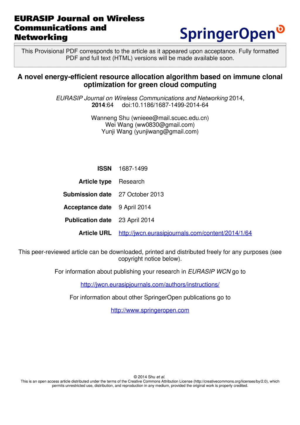 Cloud computing is a style of computing in which dynamically scalable and other virtualized resources are provided as a service over the Internet. The energy consumption and makespan associated with the resources allocated should be taken into account. This paper proposes an improved clonal selection algorithm based on time cost and energy consumption models in cloud computing environment. We have analyzed the performance of our approach using the CloudSim toolkit. The experimental results show that our approach has immense potential as it offers significant improvement in the aspects of response time and makespan, demonstrates high potential for the improvement in energy efficiency of the data center, and can effectively meet the service level agreement requested by the users.