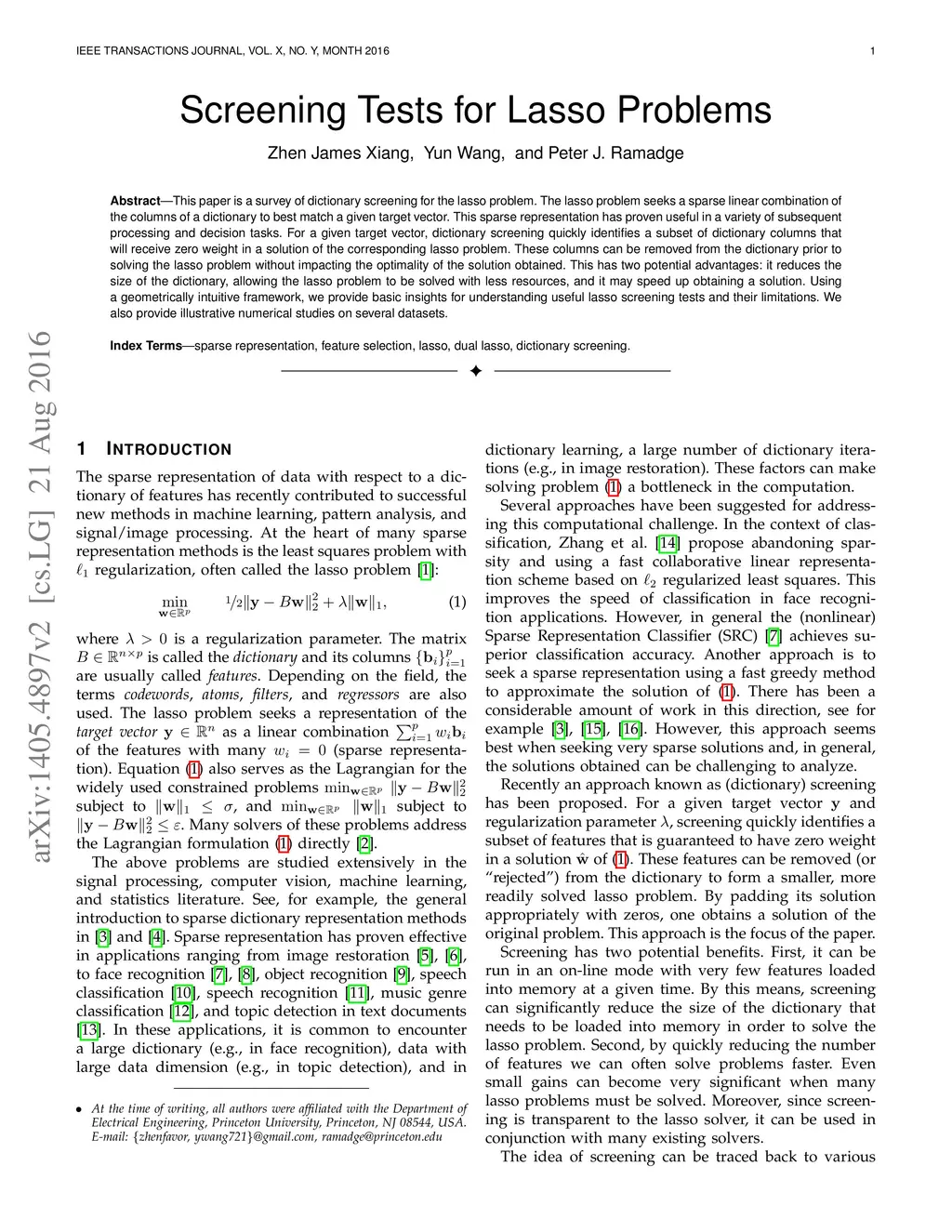 Screening Tests for Lasso Problems