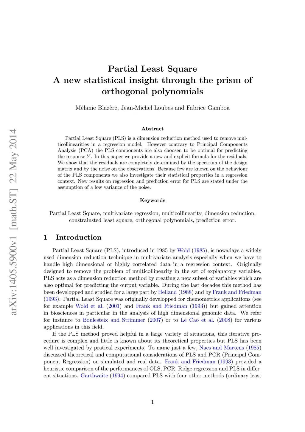 Partial Least Square (PLS) is a dimension reduction method used to remove multicollinearities in a regression model. However contrary to Principal Components Analysis (PCA) the PLS components are also choosen to be optimal for predicting the response . In this paper we provide a new and explicit formula for the residuals. We show that the residuals are completely determined by the spectrum of the design matrix and by the noise on the observations. Because few are known on the behaviour of the PLS components we also investigate their statistical properties in a regression context. New results on regression and prediction error for PLS are stated under the assumption of a low variance of the noise.