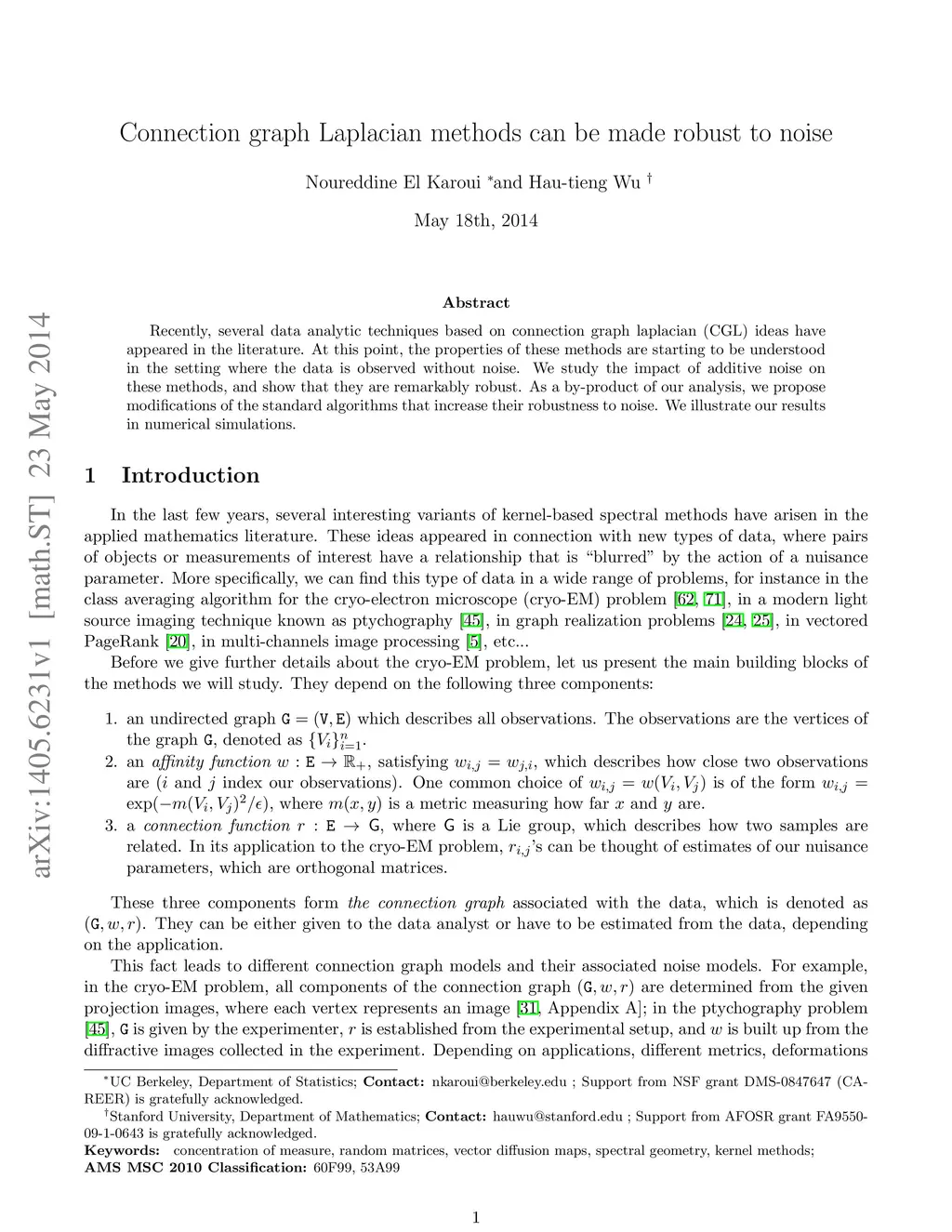Recently, several data analytic techniques based on connection graph laplacian (CGL) ideas have appeared in the literature. At this point, the properties of these methods are starting to be understood in the setting where the data is observed without noise. We study the impact of additive noise on these methods, and show that they are remarkably robust. As a by-product of our analysis, we propose modifications of the standard algorithms that increase their robustness to noise. We illustrate our results in numerical simulations.