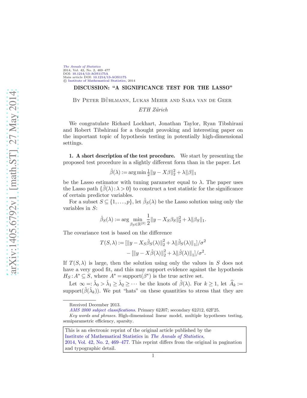 Discussion of "A significance test for the lasso" by Richard Lockhart, Jonathan Taylor, Ryan J. Tibshirani, Robert Tibshirani [arXiv:1301.7161].