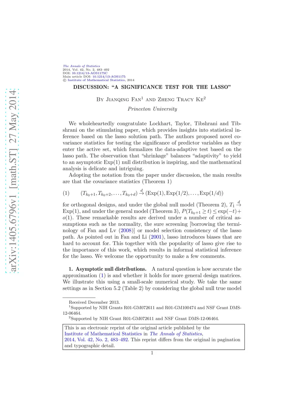 Discussion of "A significance test for the lasso" by Richard Lockhart, Jonathan Taylor, Ryan J. Tibshirani, Robert Tibshirani [arXiv:1301.7161].