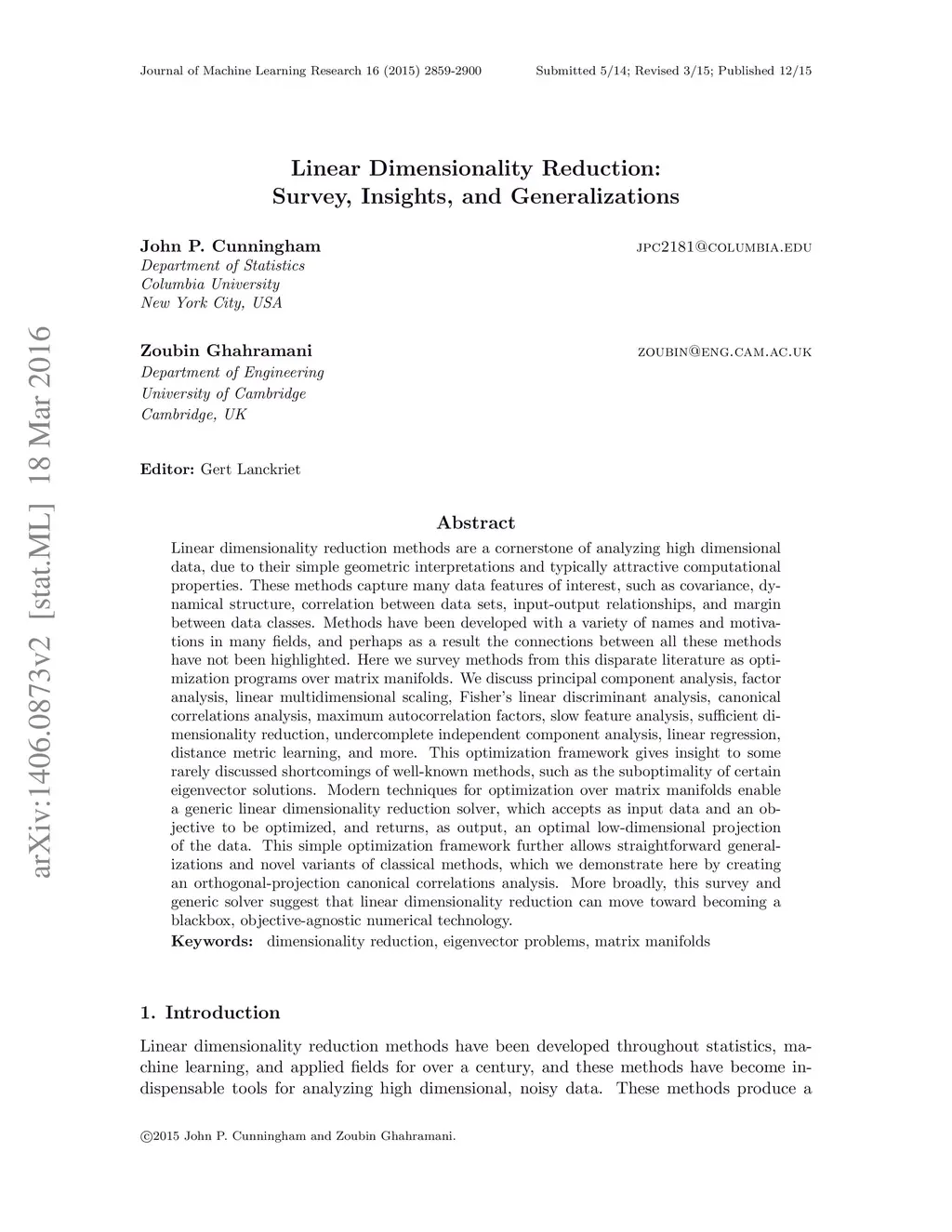 Linear Dimensionality Reduction: Survey, Insights, and Generalizations