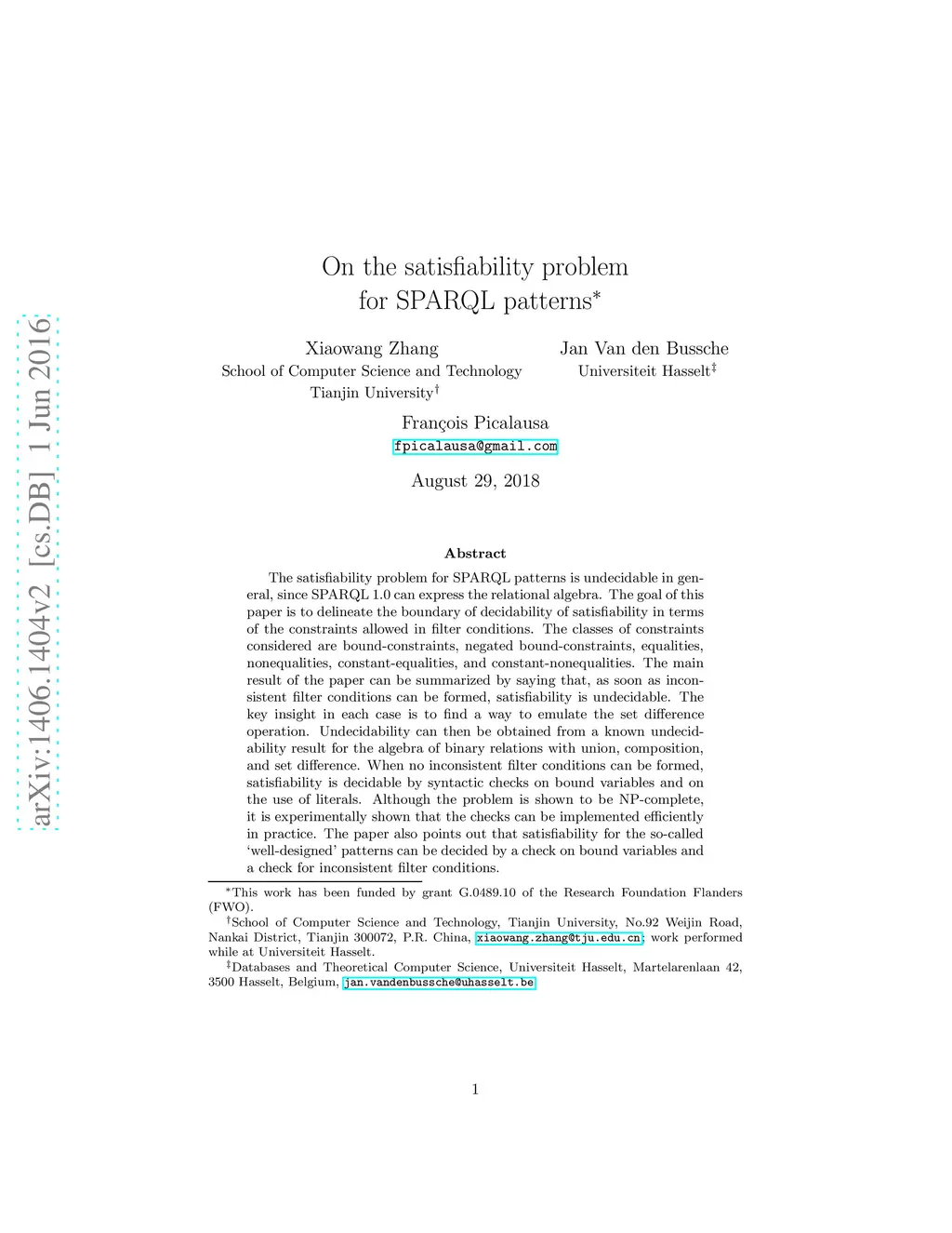 On the satisfiability problem for SPARQL patterns