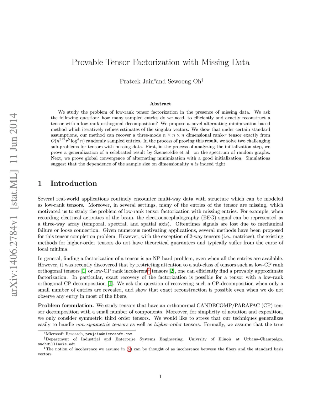 Provable Tensor Factorization with Missing Data