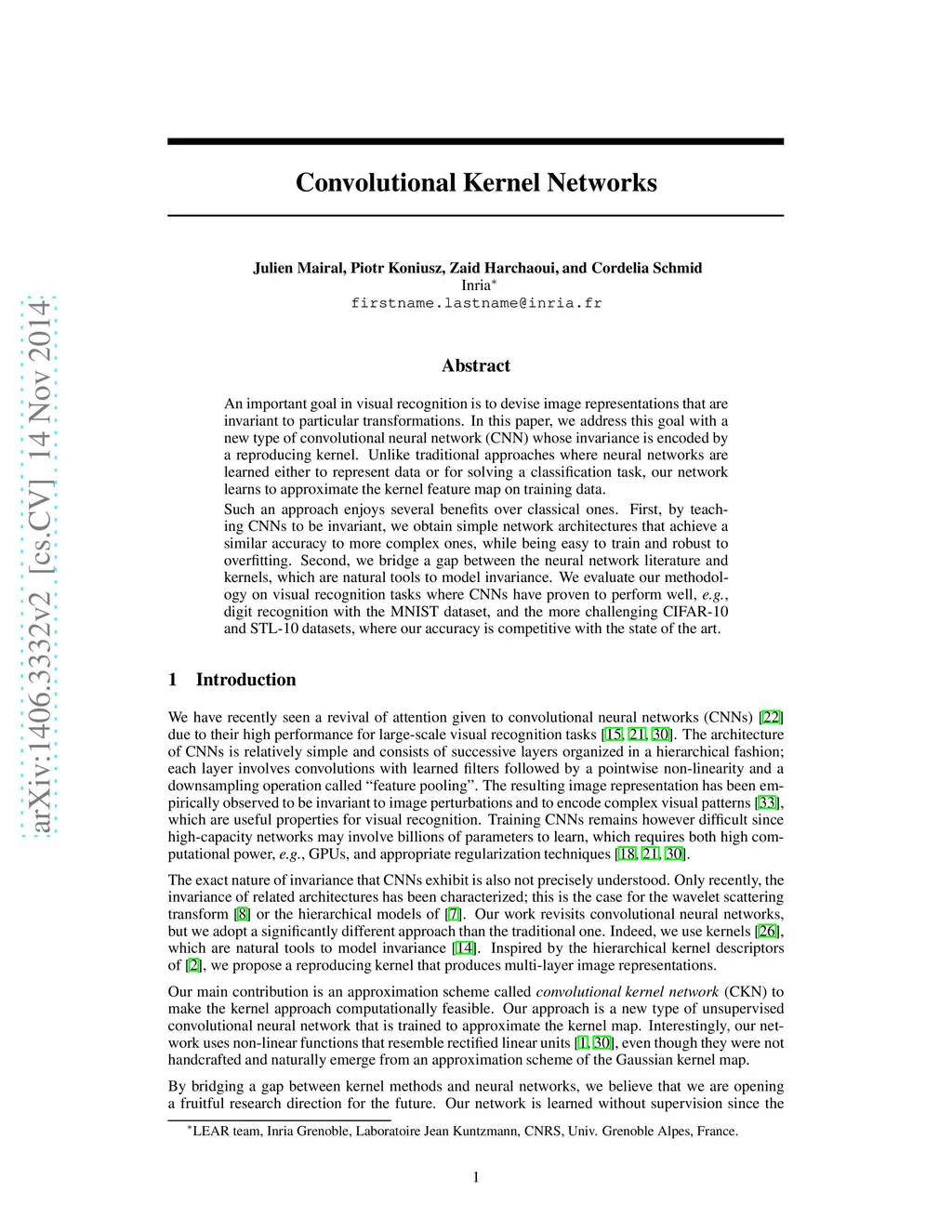 Convolutional Kernel Networks