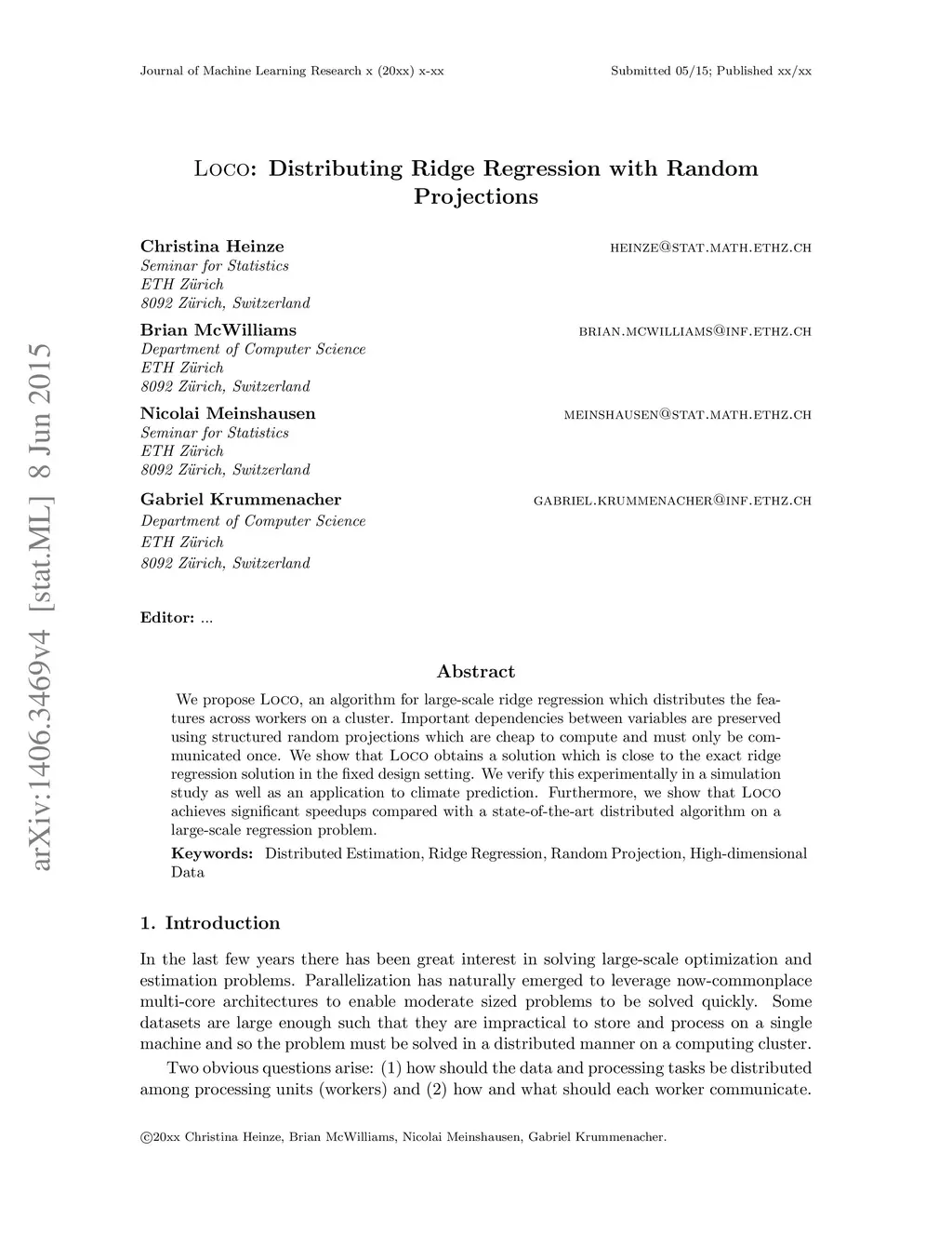 LOCO: Distributing Ridge Regression with Random Projections