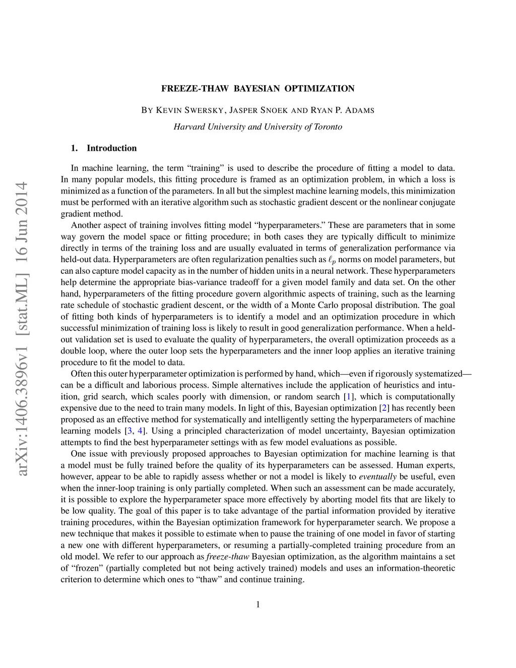 In this paper we develop a dynamic form of Bayesian optimization for machine learning models with the goal of rapidly finding good hyperparameter settings. Our method uses the partial information gained during the training of a machine learning model in order to decide whether to pause training and start a new model, or resume the training of a previously-considered model. We specifically tailor our method to machine learning problems by developing a novel positive-definite covariance kernel to capture a variety of training curves. Furthermore, we develop a Gaussian process prior that scales gracefully with additional temporal observations. Finally, we provide an information-theoretic framework to automate the decision process. Experiments on several common machine learning models show that our approach is extremely effective in practice.