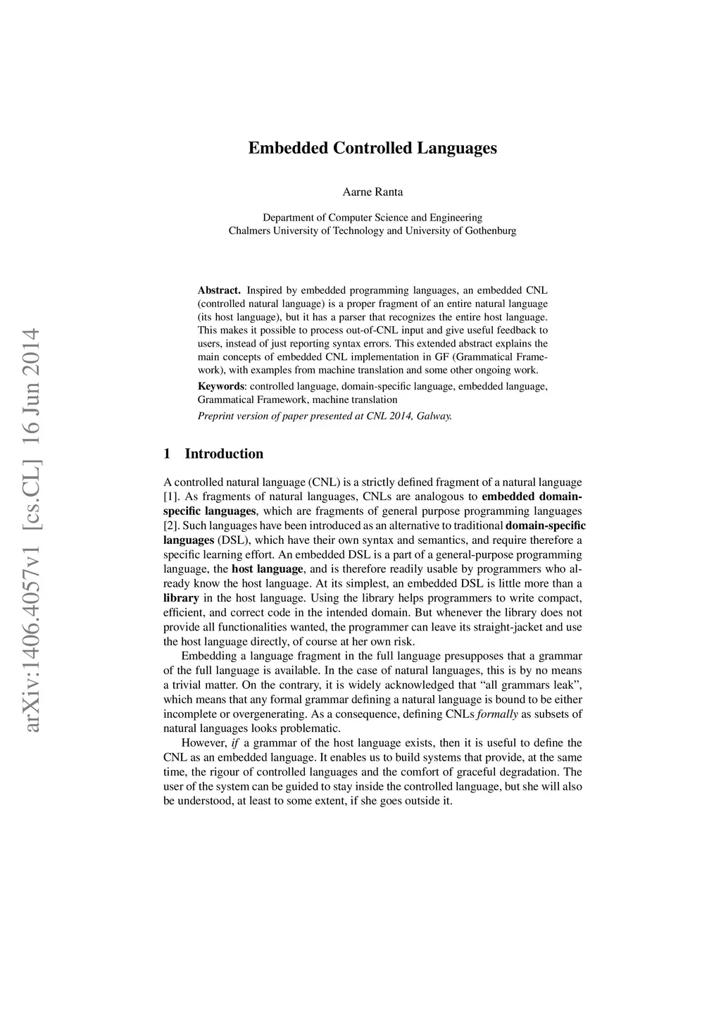 Controlled Natural Language (CNL), 2014