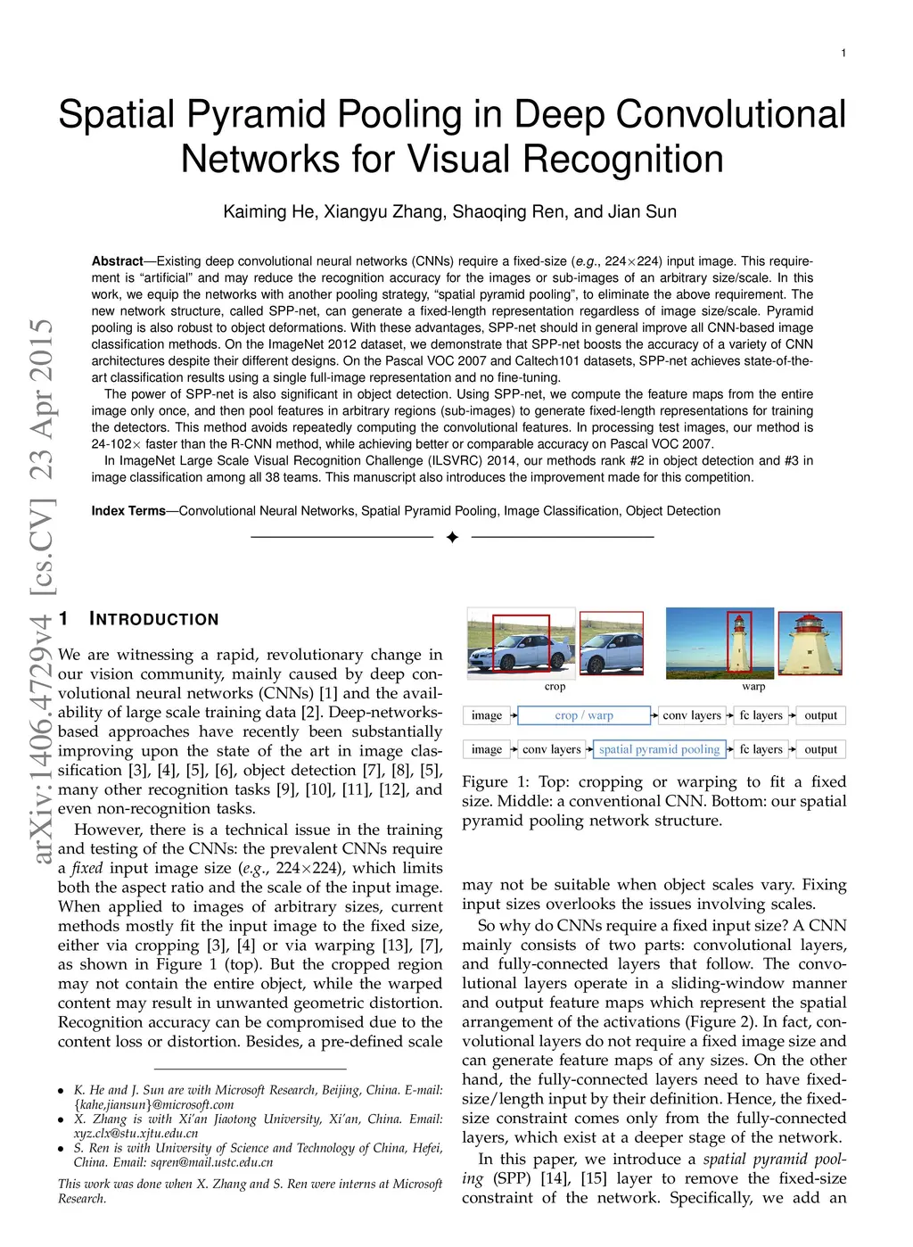 Spatial Pyramid Pooling in Deep Convolutional Networks for Visual