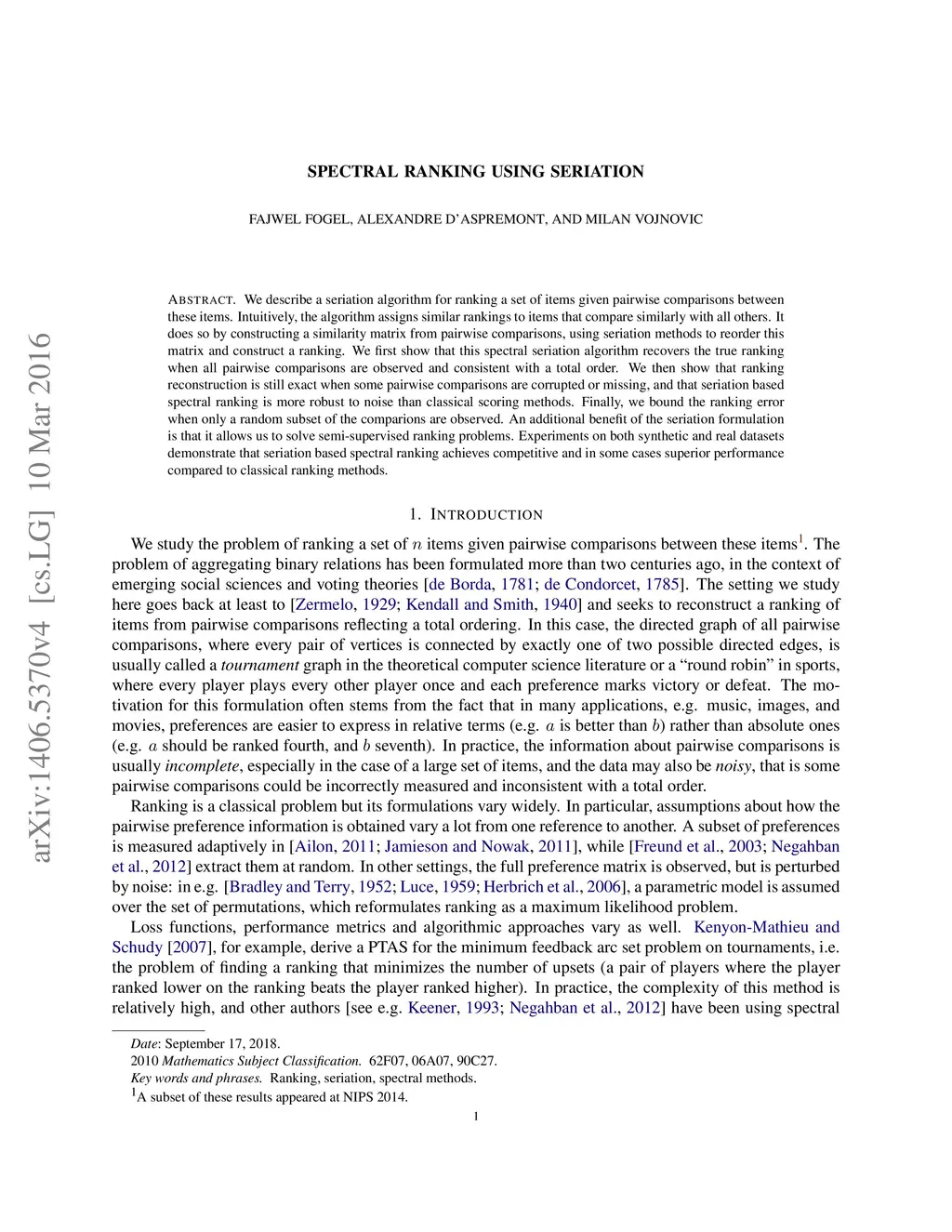 Spectral Ranking using Seriation