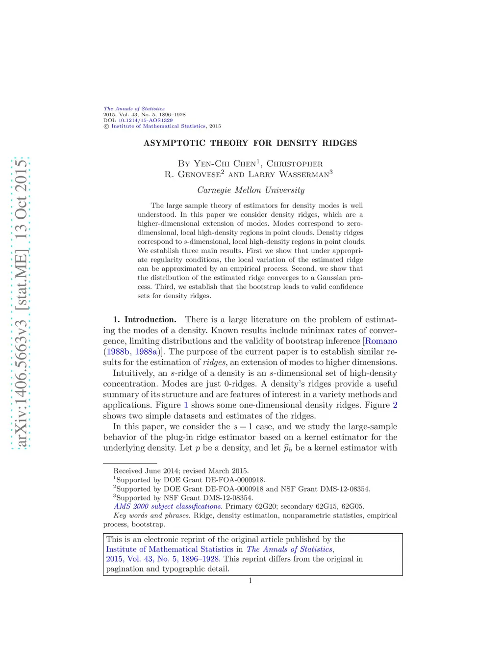 The large sample theory of estimators for density modes is well understood. In this paper we consider density ridges, which are a higher-dimensional extension of modes. Modes correspond to zero-dimensional, local high-density regions in point clouds. Density ridges correspond to -dimensional, local high-density regions in point clouds. We establish three main results. First we show that under appropriate regularity conditions, the local variation of the estimated ridge can be approximated by an empirical process. Second, we show that the distribution of the estimated ridge converges to a Gaussian process. Third, we establish that the bootstrap leads to valid confidence sets for density ridges.