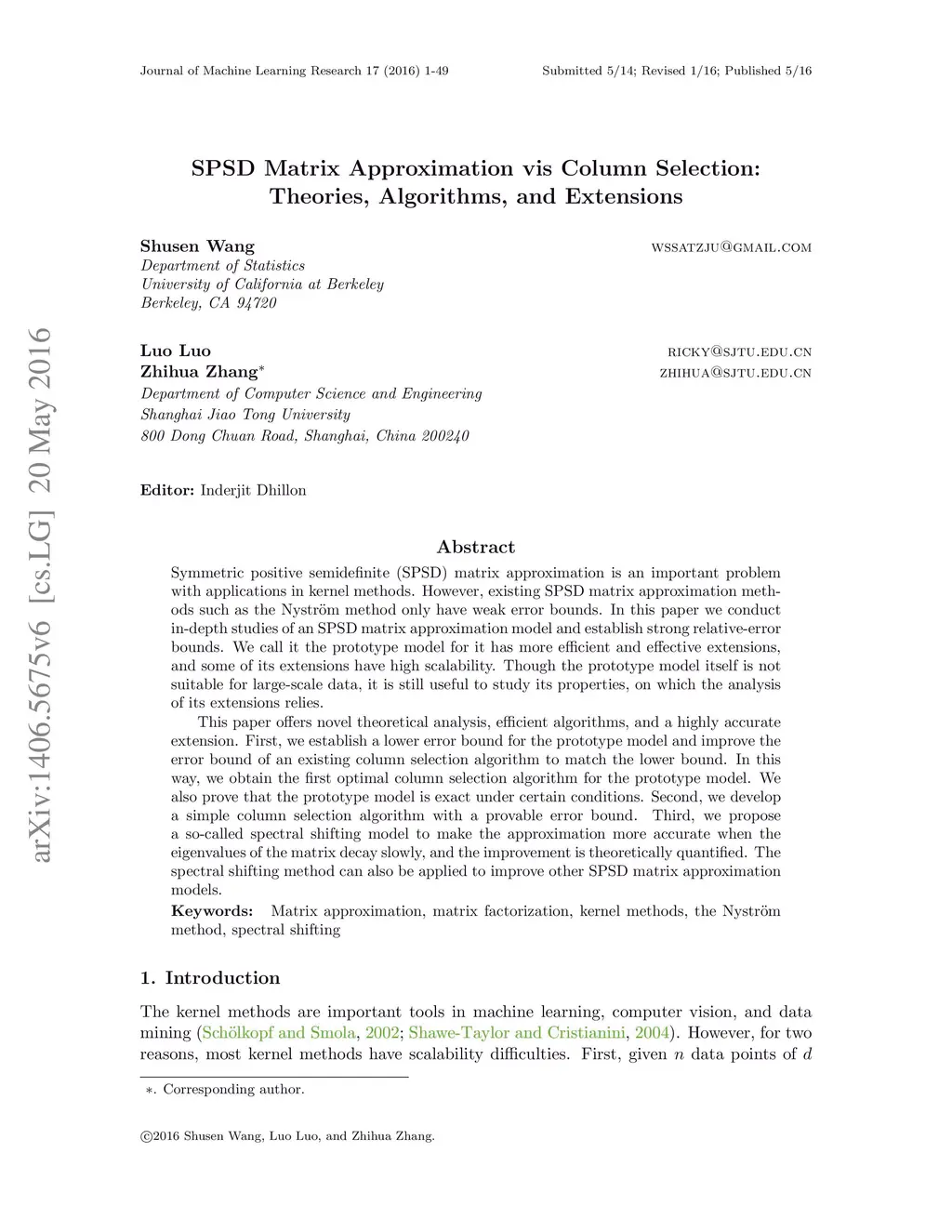 SPSD Matrix Approximation vis Column Selection: Theories, Algorithms,