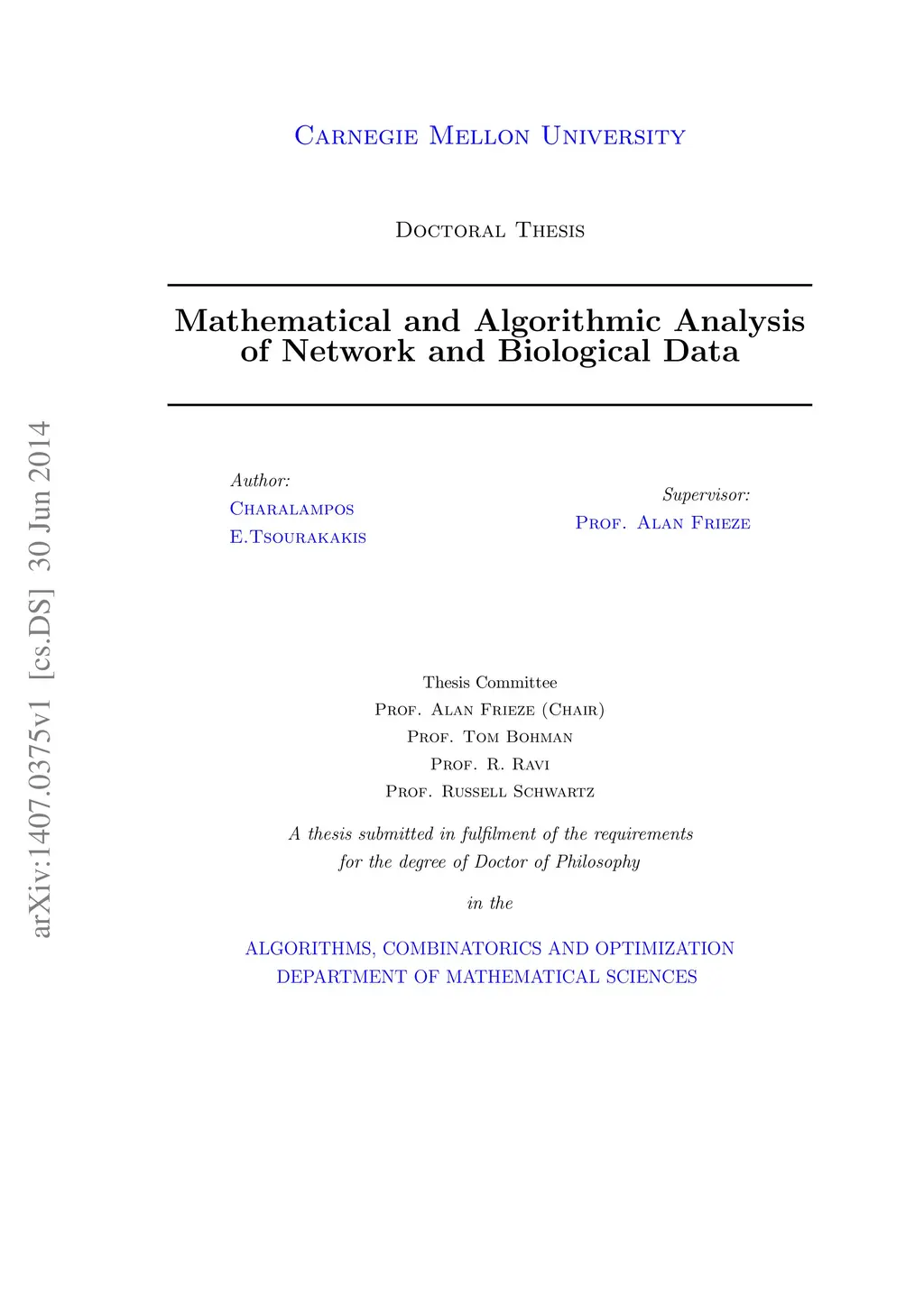 Mathematical and Algorithmic Analysis of Network and Biological Data