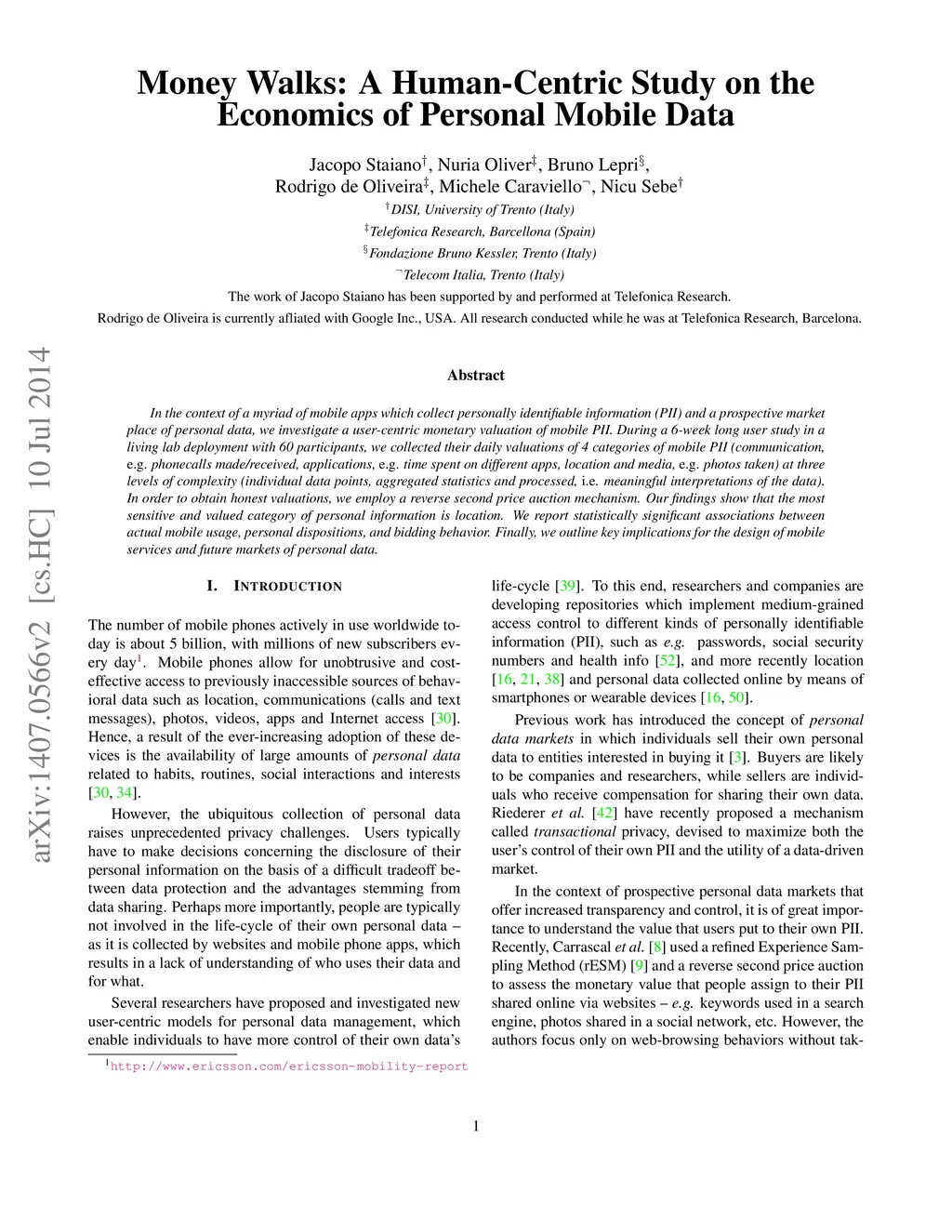 Money Walks: A Human-Centric Study on the Economics of Personal Mobile