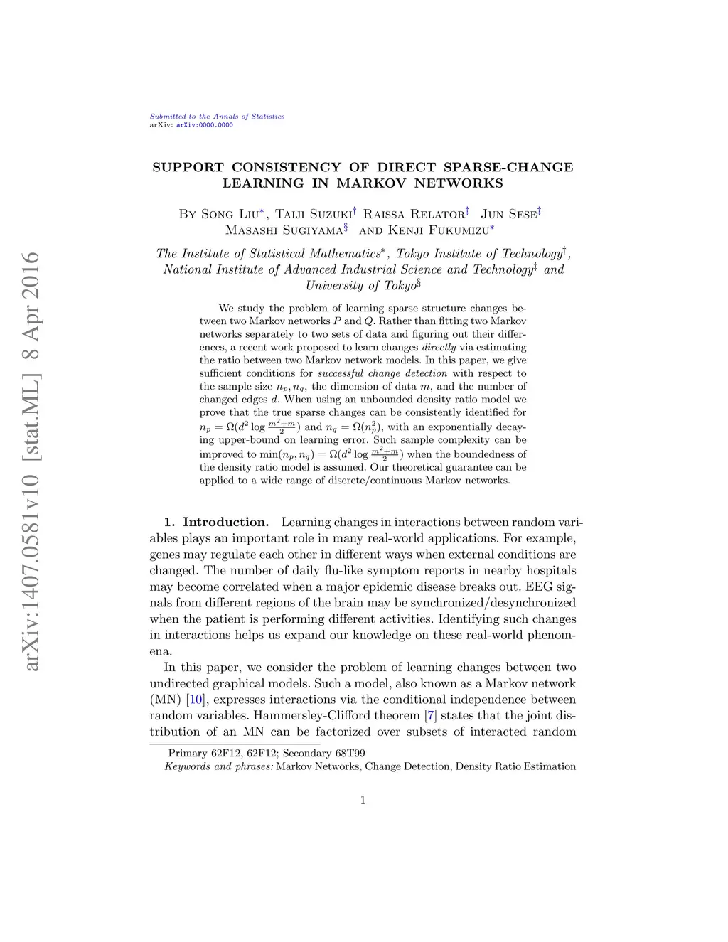 Support Consistency of Direct Sparse-Change Learning in Markov Networks