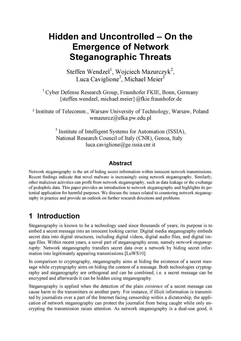 Hidden and Uncontrolled - On the Emergence of Network Steganographic